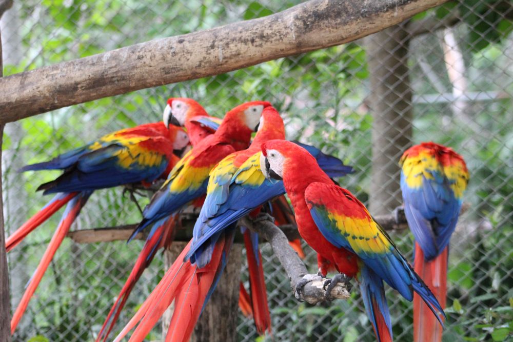 Guacamayos macao (Ara macao) en un centro de rehabilitación de fauna en Costa Rica, provenientes de comercio ilegal. Foto Pedro Romero-Vidal